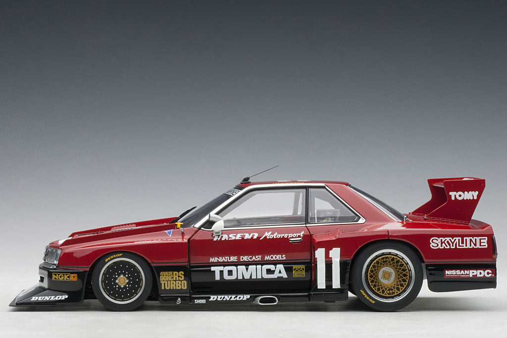The most famous cars to emerge from the Super Silhouette series were without a doubt the red-and-black Nissan Skylines of Hasemi Motorsport. Based on the new DR30-generation Skyline RS Turbos, the Hasemi cars featured 570-horsepower, four-valve-per-cylinder, turbocharged L20ZB engines known for shooting flames from their side exhausts. Campaigned by the experienced Hasemi team, the Skylines claimed two series victories in 1982 and five in 1983 (the final season for the Super Silhouettes). Their hold on the public's imagination was further cemented by sponsorship from the Tomica toy company, who released a smash-hit 1:64-scale "Pocket Car" replica of the Skyline Super Silhouette that extended the car's fame around the world.